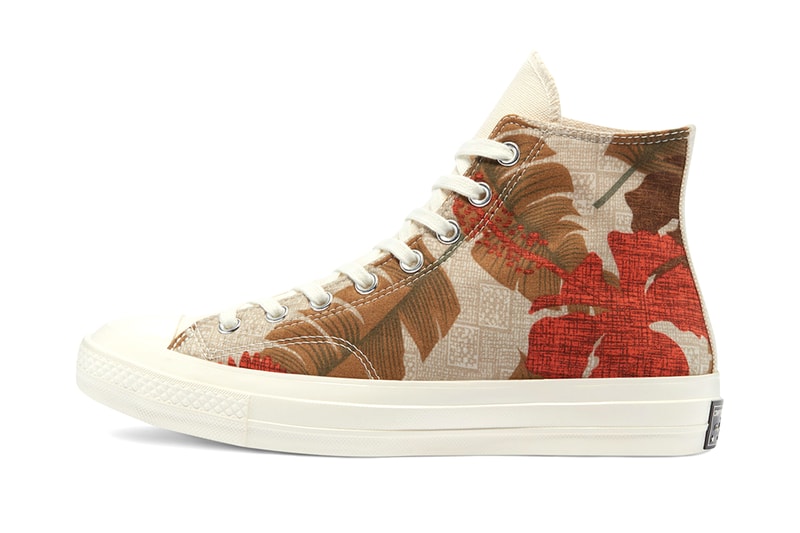 In an effort to further reduce its carbon footprint, Converse has been instructing its production and design teams to whip up earth-friendly footwear renditions. After pushing out various Renew Knit iterations, it’s now linking up with Beyond Retro — a vintage apparel retailer that is based out of the UK and Sweden — for a collection of Chuck 70 Hi “Tropical Shirt” colorways.Each pair is manufactured from second hand Hawaiian button ups, and what’s most interesting about this team-up is that no two pairs are styled in the same exact way. When ordering, it’s best to keep in mind that you will definitely receive a pair with vibrant, aloha-themed patterns that sprawl across the upper, but the exact types of floral graphics and colors aren’t necessarily revealed until you unbox the kicks. To further emphasize its sustainable theme, the Converse team created each take with 100% recycled laces, outsoles that are assembled with 13% recycled manufacturing waste as well as tongues and heel stays engineered with approximately 36% recycled polyester and 13% recycled cotton.If you’re looking to purchase a pair, these island-ready kicks are available now via Converse’s web store for $95 USD.Previously, Converse connected with The Ben Raemers Foundation for a Mental Health Awareness initiative.