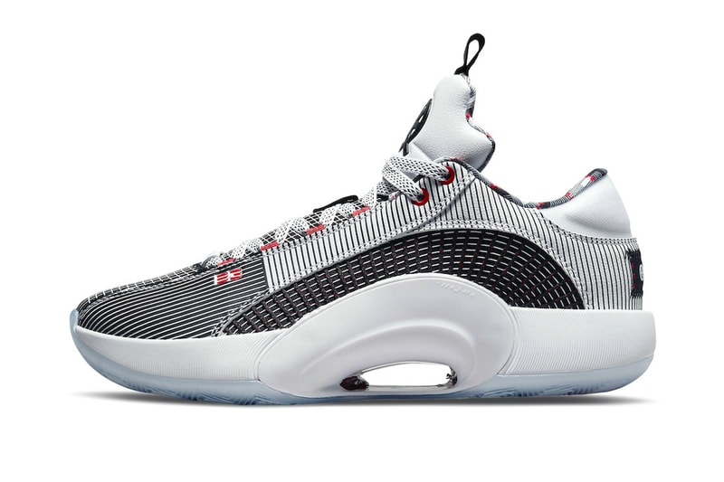 In commemoration of Jordan Brand’s annual streetball tournament held in Paris, the brand has released a number of Jumpman varieties for the Quai 54 event. As a tribute to the tournament, a special edition Air Jordan 35 Low “Quai 54” has surfaced on the internet.Similar to its predecessors, the design is inspired by traditional African and Parisian elements as it features a new contrasting geometric pattern. Glazed in a white, black, and red colorway, the design embodies a futuristic vibe drawn out with pinstripes and grid patterns along the foot. The tongues are embellished with the signature Jumpman logo and the official icon of Quai 54. Hints of red are sprinkled along the top with a white midsole and an icy translucent outsole to complete the look.The Air Jordan 35 Low “Quai 54” is now available on Nike CN for ¥1,399 CNY (approximately $220 USD), while an official stateside release has yet to be announced.Elsewhere in footwear, take another look at the Air Jordan 3 “Racer Blue.”