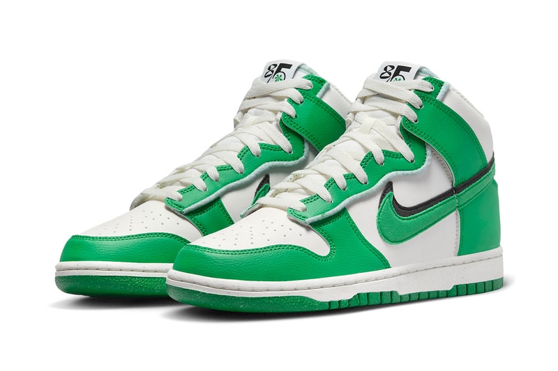 In honor of the debut year of the Nike Dunk High, the sportswear giant has released a new pair of the Nike Dunk High Retro SE in a new “Stadium Green” colorway.The shoe comes dressed in a bold emerald green hue that sees details emphasized in phantom, sail and black. Constructed in the typical leather build, mesh tongues as well as lining, the makeup is also intertwined with suede used on the eyelet panels and the dual Swoosh for extra highlight. The number “85” is seen branded in the vintage text on the tongue tags as a nod to the first year that Dunk High was debuted. Rounding out the design is the Nike’s speckled grind rubber outsole in the matching “Stadium Green.”The Nike Dunk High Retro SE “Stadium Green” is set to release in the coming weeks in select retailers and online at Nike for $120 USD.In other footwear news, the Nike Air Force 1 Mid LX has appeared with an “Enamel Green” makeover.