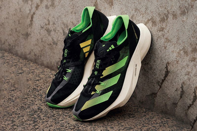 adidas has poured a considerable amount of energy into its running category to create a premier line for its long-distance racers. One silhouette that’s been leading the pack has been the Adizero Adios Pro, and its latest 3.0 variation has just been officially announced.In the words of the German sportswear imprint, this newest offering is designed for those with a “need for speed.” The overall low-cut shape is very similar to its predecessors but features major upgrades from a technology standpoint. Its cushioning system is supported by two layers of Lightstrike Pro foam which gives runners a bouncy, cloud-like ride as well as its Energyrods 2.0 tech which supplies stability and responsiveness.The marathon-ready model has been unveiled in its inaugural “Core Black/Beam Yellow/Solar Green” colorway. The former tone decorates a majority of the real estate while “Beam Yellow” and “Solar Green” accents are embedded in gradient form into the oversized stripes that don the forefoot. Semi-chunky midsole units are styled with a crisp white finish.Interested in copping? adidas is slated to drop these come June 23 for $220 USD.For other news related to sneakers, adidas is re-releasing Kobe Bryant’s Crazy 1 OG “Metallic Silver” colorway.