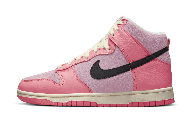 The Nike Dunk High is the latest silhouette to join the footwear giant’s “Hoops” series.The iteration arrives with a purple-pink suede base, bright pink leather overlays and hints of white on the tongue and lining. A black panel swoosh adds a sharp contrast to the upper, while other branding hits can be found on the Nike Hoops tongue tag and insoles. The shoe rests on a white midsole and pink outsole, while complementing white laces give the model a clean finish.Check out the shoe above. The Hoops Nike Dunk High is set to drop in the coming weeks via Nike and select retailers for a retail price of $130 USD.Elsewhere in footwear, take an on-foot look at the Nike Dunk Low in “Safari Swoosh.”