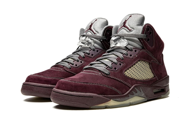 The Air Jordan 5 had quite an eventful 2022 as it was produced in collaborative form alongside CLOT, PSG and hip hop mogul DJ Khaled and saw nostalgic colorways like the “Green Bean” return to the frontlines. And now that those are in the rearview mirror, the Jordan model already has its eyes set on delivering the heat in 2023, and the latest to be brought to our attention is a retro release of the Air Jordan 5 “Burgundy” colorway.Originally during the AJ 5’s impressive run in 2006, the understated installment is set to make its way back to the shelves with all of its original design cues. Buttery suede upper panels are styled in a “Deep Burgundy” hue which is reminiscent of aged wine, and this is contrasted by “Flint Grey” shoe laces and reflective tongues. Lace toggles will have the usual see-through construction and the tongues will be fitted with Jumpman logos that are dressed in the pair’s titular shade. Spiky molds on the midsoles feature more “Flint Grey” accents while the bottoms are done up with icy constructions.Mark your calendars for a September 9, 2023 release and expect these to retail for $225 USD.In other news, Air Jordan 9 “Light Olive” official images have popped up.