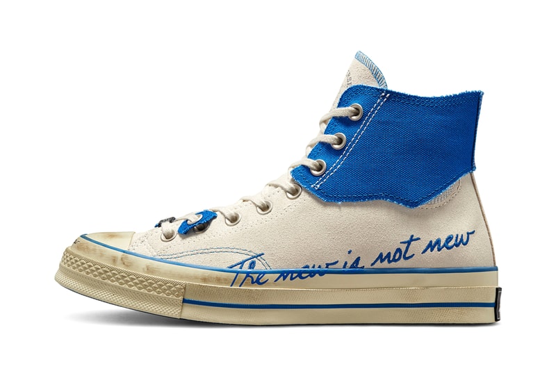 Revealed last week, South Korean label ADER error has joined forces with Converse to reimagine the Chuck 70. The pair taps into ADER error’s “The new is not new” design philosophy that connects past and present with cues from classic looks.Distorting an aged look with a deconstructed aesthetic, the duo has equipped the old-school Chuck 70 with various collaborative elements. An asymmetric presentation sees both shoes featuring blue cut-outs of canvas attached from the toes to the collar. The left shoe carries “The new is not new” text that begins in a blue print on the aged midsole and transitions to blue embroidery on the off-white canvas upper. An ADER error license plate also appears on the left shoe’s heel with unique co-branded designs landing on each shoe’s tongue. Lastly, “The new” and “not new” text arrives on the right and left shoe’s respectively in black.Release for the ADER error x Converse Chuck 70 begins January 9 via ADER error. Select offline stores will stock it on January 10 and Converse has scheduled a launch on January 12 at a price of $115 USD. View this post on Instagram A post shared by A D E R (@ader_error)For more in footwear, Jordan Brand is celebrating Chinese New Year with a “Year of the Rabbit” capsule that features footwear and complementary apparel.