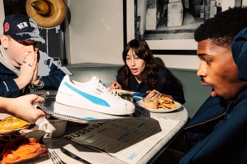 Celebrating 50 years of the iconic PUMA Clyde sneaker, downtown New York footwear retailer Extra Butter and neighboring culinary outpost Russ & Daughters have teamed up to craft a limited-edition version of the decades-old silhouette.In the ’70s, basketball player Walt “Clyde” Frazier emerged to the sport’s forefront for his impressive on-the-court moves and his signature off-the-court style. When Clyde approached PUMA for a custom pair of Suedes, the brand rearranged the original shoe’s construction with a lighter and wider shape, stamped the athlete’s name on its side and called it the official Clyde sneaker.Today, the silhouette has stood the test of time as a signature shape among fashion and sports alike. Referencing the shoes’ original launch in 1973, Exrtra Butter and Russ & Daughters’ version will be limited to just 73 pairs.“Growing up in New York, especially as a b-boy, the Clyde is an icon,” said Extra Butter’s creative director, Bernie Gross, in a statement. “It’s a simple, timeless classic and has served as a great canvas for designers to implement various aesthetics, trends and perspectives that can speak to a global audience for the past five decades. It’s a must-have for any sneaker enthusiast.”The collaborative silhouette dons leather in Russ & Daughters’ classic crisp white, blue and silver accent colors. Nodding to Russ’ century-long legacy in New York, the shoe features the restaurant’s emblematic fish patch alongside its server coats and faux fish scale leather on the heel, while additional branding boasts the food spot’s founding year: “NYC / 1914.” Inside, the footbed mimics Russ & Daughter’s storefront signage, and the backside of the tongue reads, “A New York City Story by Extra Butter.”Take a look at the design in the gallery above. Contact Extra Butter’s store in New York’s Lower East Side for availability.In more footwear news, take a first look at the Supreme x Nike Air Bakin colorways.