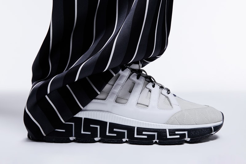 Salehe Bembury’s Versace Trigreca sneaker has been a staple of the Donatella Versace-helmed House since Fall/Winter 2020, and now as part of the sneaker’s Spring/Summer 2023 update, the brand has unveiled a conceptual “behind the scenes”-style video of how the sneaker is made.It spotlights the new SS23 pair, arriving in a predominantly white design with touches of blue decorating the branded leather tongue tag and very top eyelet, and black cladding the signature sole unit and heel branding. The shoe is packed with House iconography, giving the pair its name thanks to the use of the Versace Greca motif appearing on the toe stripes, midsoles, and outsoles. Elsewhere, the Medusa symbol sinks into the sole, while Versace’s Milanese HQ — Via Gesù, 12 — sees its coordinates printed on the uppers in gold-toned letters and numbers.The proprietary Greca Cushioning System, designed especially for Versace by Bembury, underpins the more muted SS23 iteration, but ultimately adds that unavoidable Versace flair. In the video, we see technical workings of how the sole unit is made and painted by a robot, before the very same robot wears the sneaker like a shoe last.Take a look at the video above, and find more Trigreca goodness on Versace’s website.Elsewhere, Mr. Bailey has teased another conceptual adidas collaboration.