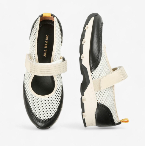 All Black Footwear is keeping it core for Spring ’26, offering a well-rounded collection of established bestsellers including loafers, fisherman sandals, ballet flats, kitten heels, unique slides, and mesh sneakers, says Marty Rose, distribution manager for North America. The palette emphasizes soft on-trend tones of beige, nude, green, and pink, as well as white and metallic treatments.